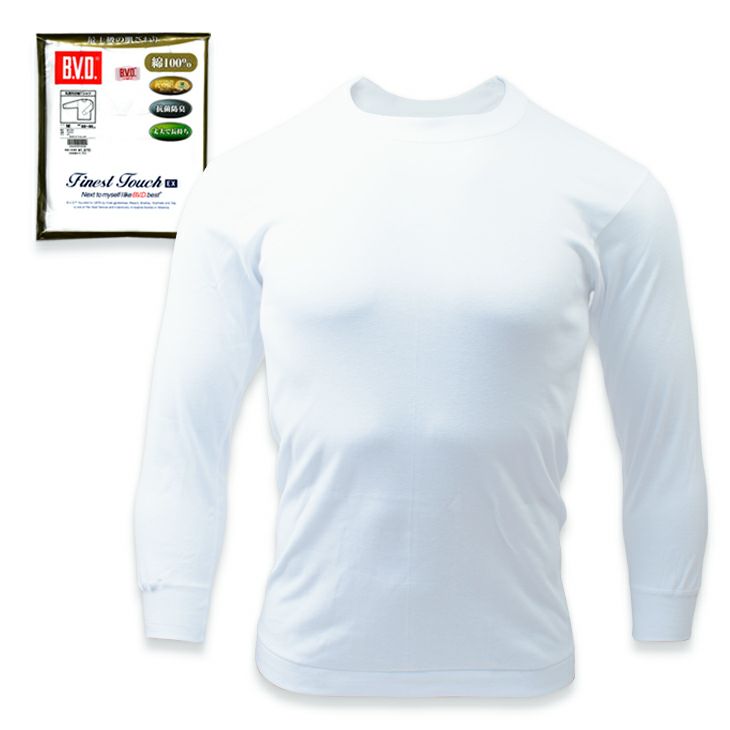 BVD Finest Touch EX 丸首8分袖Tシャツ 綿100% 抗菌 防臭 fe317-ll (LL)