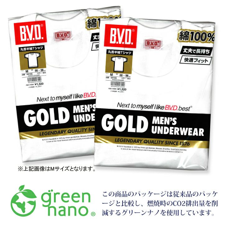B.V.D.GOLD 丸首半袖シャツ TOUGH NECK 2枚セット (S/M/L) G013-2P
