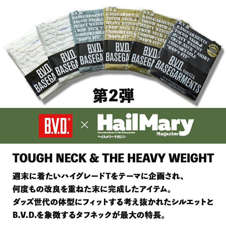 他の画像を見る B.V.D.×ヘイルメリーマガジンコラボレーション【第2弾】 【日本製】BVD ベースガーメンツ ヘビーウエイト 綿100% クルーネックTシャツ(M/L/XL)BGM13-HW 販売価格 ¥ 16,500 税込 カートに入れる お気に入りに登録する