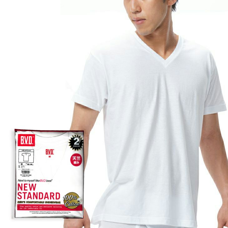2枚組 BVD NEW STANDARD Vネック半袖Tシャツ M/L/LL EY714-2P