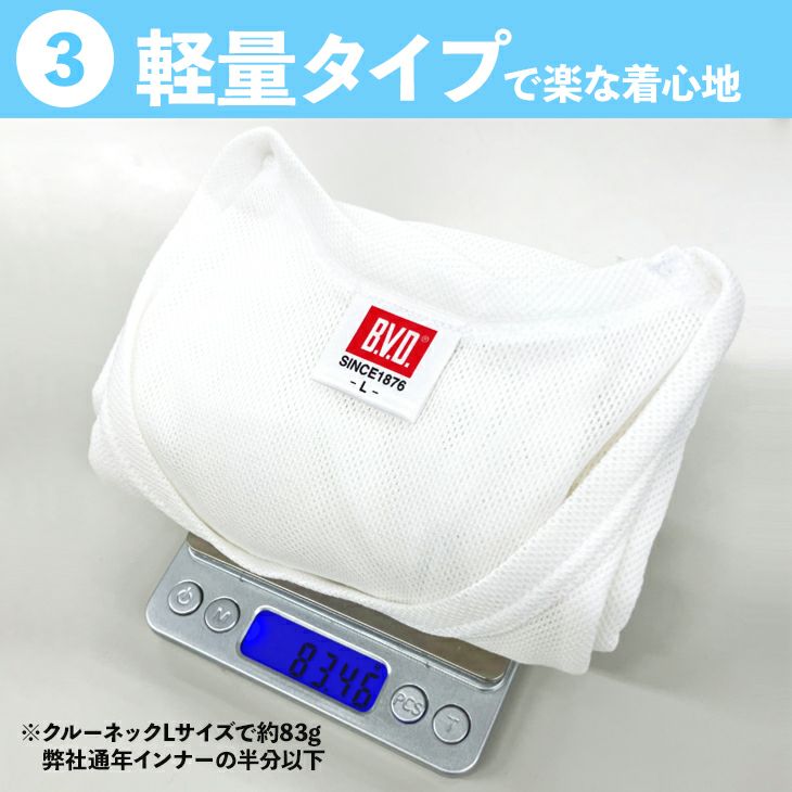 他の画像を見る 吸水速乾 通気性 軽量 伸縮性 BVD エアーメッシュ クルーネック半袖シャツ【M/L/LL】GR773 定価 ¥ 1,980 のところ 販売価格 ¥ 1,188 税込 カートに入れる お気に入りに登録する