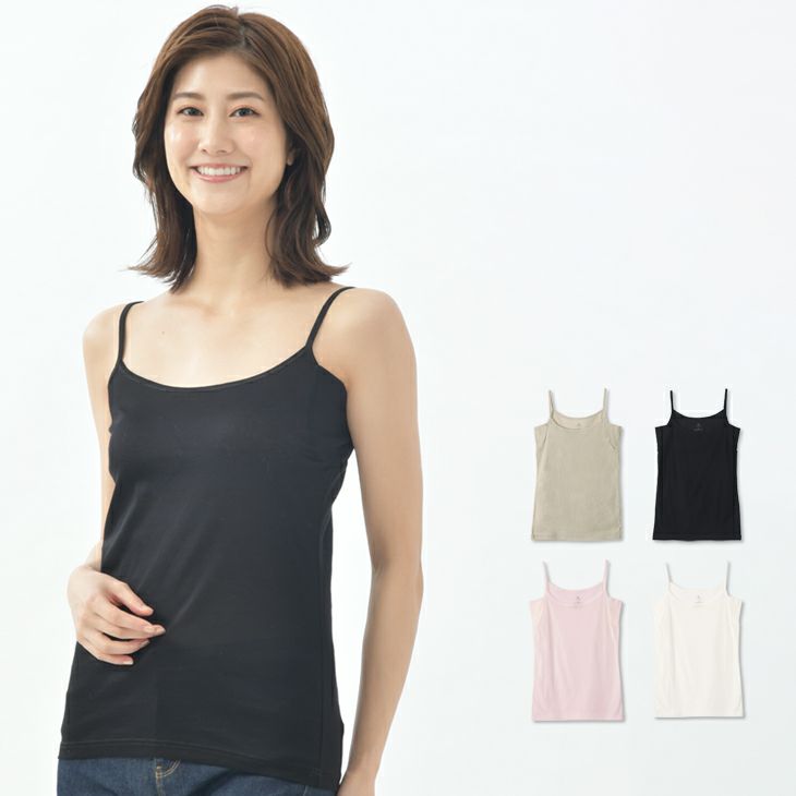 襟ぐりやキャミソールストラップ部も綿100%の共生地を使用。
