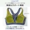 LIGHT SPORTS Simple but Functional 「シンプルで機能的なデザイン」をテーマに 運動時のパフォーマンスの向上、着心地を重視したシリーズです。 ランニング・ダンスなどハードな運動に対応したハイサポートブラ。 前面に内蔵されたパワーネットで胸揺れを防ぎます。 さらに、安定感のあるアンダーゴム、ホールド力のある脇高設計、幅広ストラップでバストをしっかりとサポート。 生地は素肌に溶け込むような、なめらかで肌触りの良い中厚地。 優れた伸縮性でぴたっと体に密着し、動きやすい。 素早く汗を吸収し、乾きやすい吸水速乾機能付きで快適な着用感が継続。 汗の不快な臭いを防止する抗菌防臭機能、屋外の運動でも安心なUVカット率99.5%。 カップは肌馴染みの良い一体型構造。 運動時にズレにくく、お手入れ楽ちん。 通気性の良い穴あきカップで丸みのあるキレイなバストに。 運動時の肩甲骨の動きを妨げないYバック仕様。 年代を問わないシンプルなデザインです。