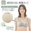裏も表も綿100%涼軽さらり 綿100%天然素材のハーフトップ。肌にやさしく快適な着心地です。アウターに響きにくいカップ接ぎでより美しいバストラインに。洗濯タグはチクチクしない転写プリント仕様。 極限まで薄くした鹿の子素材は、通気性に優れ、ムレにくく、さらさらとした肌触り。太めのストラップは肩への負担を軽減し、ズレ落ちにくい仕様に。またカップは、通気孔をたくさん開け、通気性も良い、軽いモールドカップを使用。 アンダー部分のゴムも身生地で包み、表側も肌側(裏側)も全て綿100%。通気性・吸水速乾機能付きでムレにくく部屋干しの季節にもぴったりのアイテムです。 リラックスシーンやナイトブラにもおすすめです。