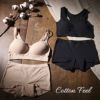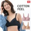 肌にやさしくフィットする【コットンフィール】~アクティブな日常のママ世代へ~ 肌触りやわらか、伸縮性の良い綿混素材で からだに快適フィット。 光沢感あるロゴ入りアンダーゴムは肌あたりが優しくズレにくいので1日快適に過ごせます。 アウターに響きにくいモールドカップは脇高で安定感もあるのでアクティブに動く日にもぴったり。またサイドカップが脇から内側に傾いているためバストをしっかりホールド。