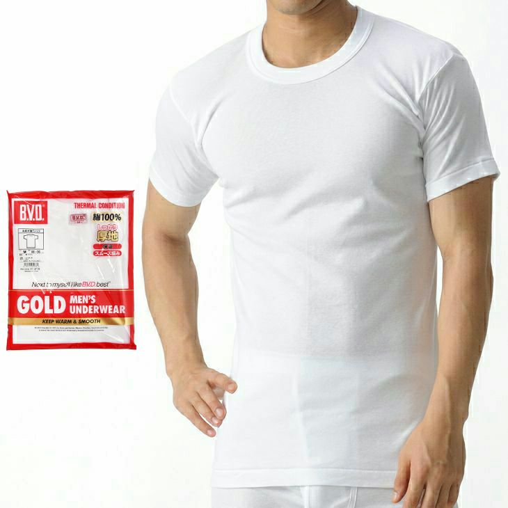 【2枚セット20%OFF】BVD あったかインナー 綿100% 厚地スムース 丸首半袖Tシャツ (LL) gf943-2p-ll
