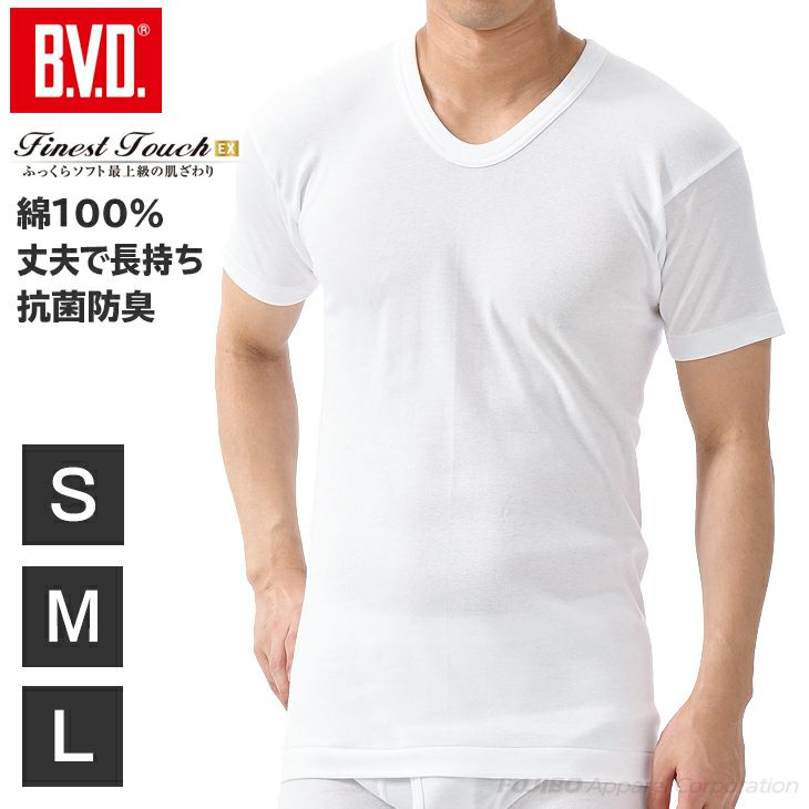 【単品】B.V.D. Finest Touch EX U首半袖Tシャツ(S.M.L) 【綿100%】 メンズインナー 下着 肌着 抗菌 防臭【白】fe314 コットン