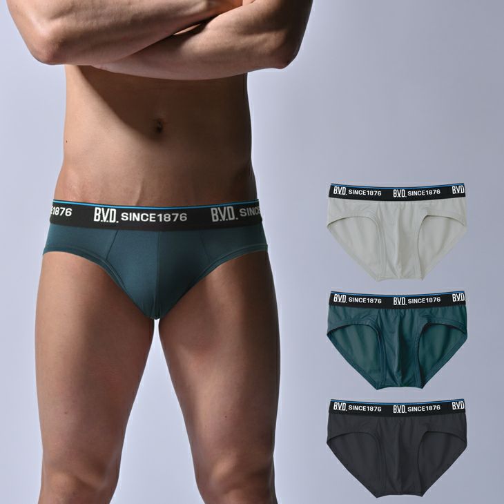 【B.V.D. 3S LIGHT FIT BOXER】 リニューアルネット限定アイテムのビキニブリーフ! 3SとはSPORTY(軽快)、SOFT(優しいフィット感)、SIMPLE(扱いやすい)をコンセプトに、カジュアルからスポーツまで様々なシーンで着用できるシリーズです。吸水速乾性、通気性に優れたアイテム。軽量で涼しげな見た目のメッシュ素材を使用。糸の変更によりさらに軽量化し、まるで穿いていないかのような着用感を実現。生地を梨地のようなメッシュ素材にしたことによりドライタッチ感が向上。また、試験データを基にフロント部分の立体を大きくすることで全体のフィット感のバランスをアップさせました。本来は夏場に活躍するアイテムですが、冬場のタイツの下に穿いてもムレにくく、快適に過ごせます。