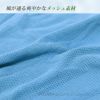 風通る爽やかメッシュ素材 通気性がよくムレにくい 綿の吸水性とポリエステルのドライ性を兼ね備えたハニカムメッシュ生地は、軽量で通気性に優れており空気が通りやすく蒸れにくい。