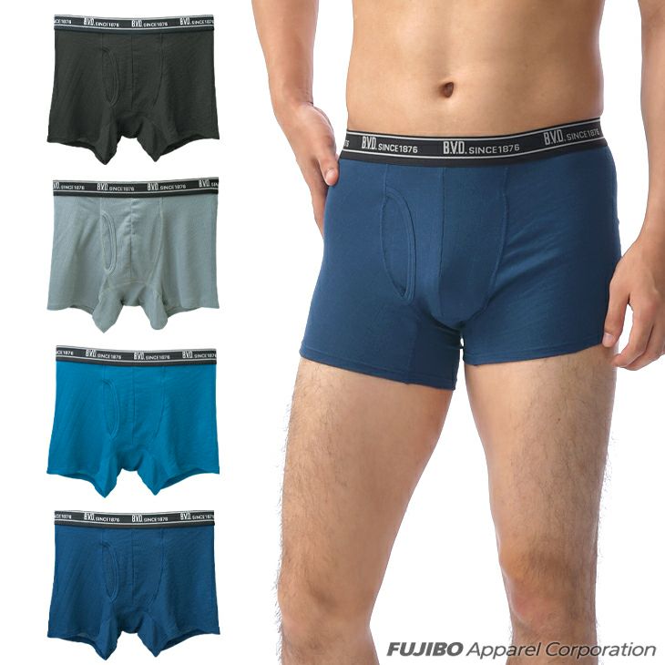 毎日のインナーにおすすめ 吸水速乾仕様でお洗濯後も速く乾きやすい 汗をよく吸い、素早く乾かし快適! B.V.D.の定番ボクサーパンツです。 サイドやバックに縫い目がなく、 包み込むような穿き心地が人気のひとつです。