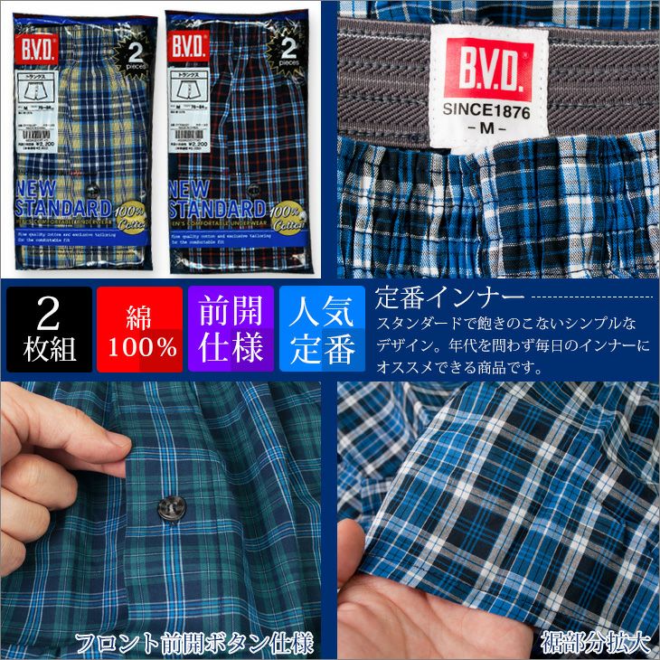 他の画像を見る B.V.D.GOLD 先染(柄)トランクス 2枚セット M/L G192-2P 決算SALE30%OFF 定価 ¥ 2,640 のところ 販売価格 ¥ 1,848 税込 カートに入れる お気に入りに登録する