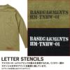 Tシャツの裾付近にベースガーメンツのステンシル文字をプリントする、小野里編集長のアイデア。B.V.D.の歴史あるアメリカンホームウエアとしての「重み」を表現するうえで、ミルスペックのウエアによく見られるナンバリングを施すのもありではないかと考えられた。