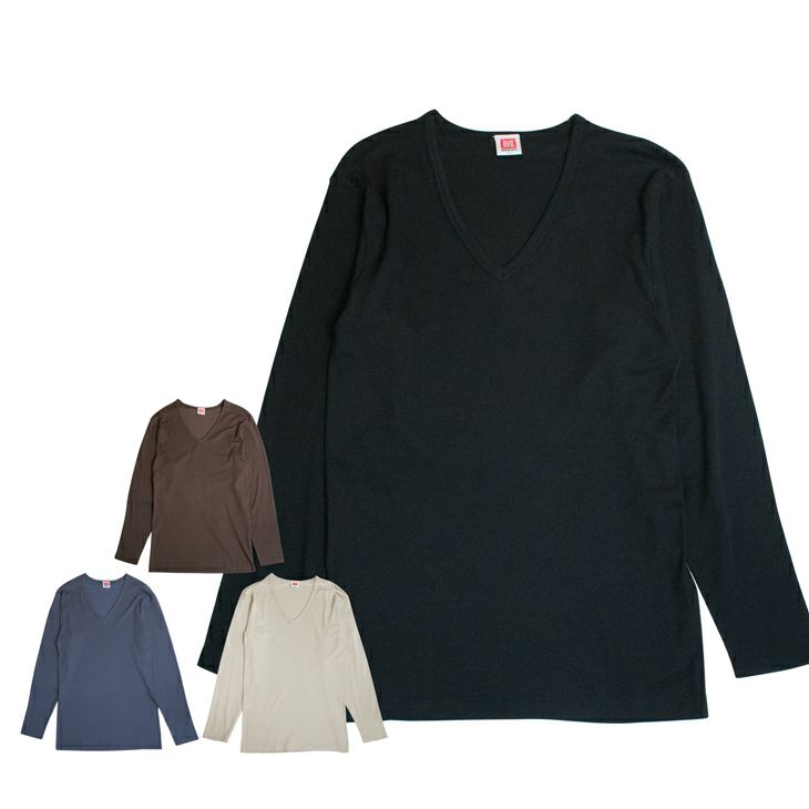 BVD AIRHEAT SMOOTH V首長袖Tシャツ エアヒートスムース 軽量 保温(M/L/LL)GR048