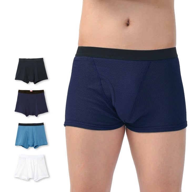 風通る爽やかメッシュ素材 通気性がよくムレにくい 綿の吸水性とポリエステルのドライ性を兼ね備えたハニカムメッシュ生地は、軽量で通気性に優れており空気が通りやすく蒸れにくい。