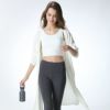 胸揺れサポート機能がついたミドル丈ブラトップ。